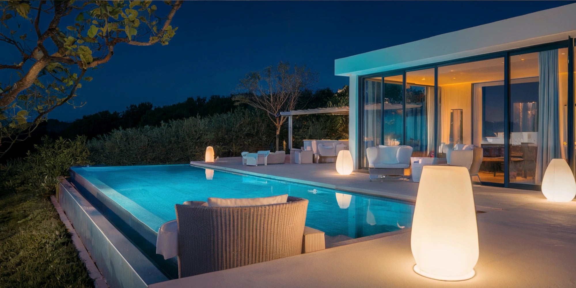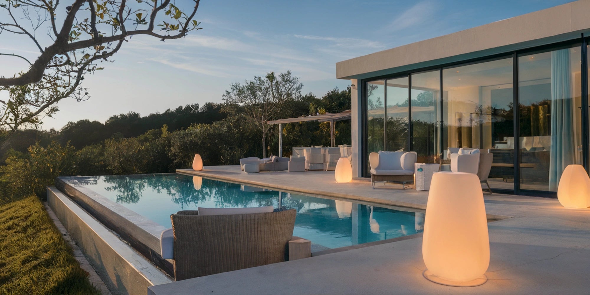 Découvrez l'élégance de votre espace extérieur, où l'éclairage se fond harmonieusement dans le design pendant la journée et se transforme en un refuge chaleureux et ambiant la nuit, créant une atmosphère à la fois confortable et sophistiquée.
