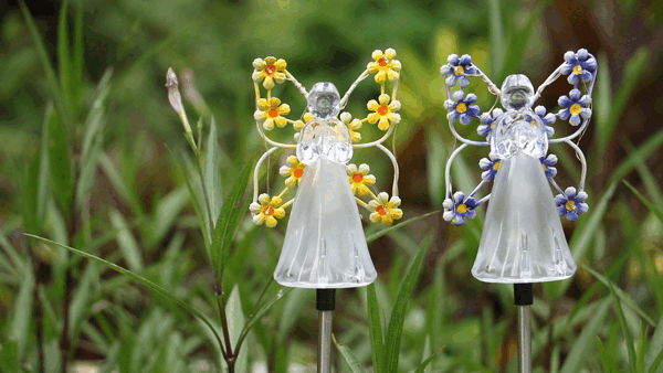 ÉCLAIRAGE EXTÉRIEUR ANGE : La forme de l'ange mesure environ 3,54 pouces de haut et comprend 4 couleurs : violet, rose, bleu et jaune ; la nuit, des lumières romantiques sont diffusées pour créer une atmosphère agréable et chaleureuse pour vous et votre famille.